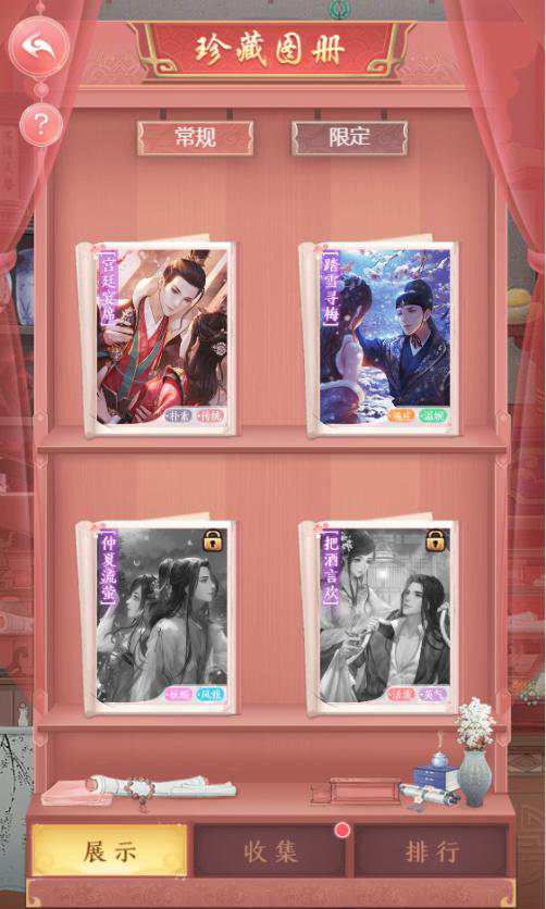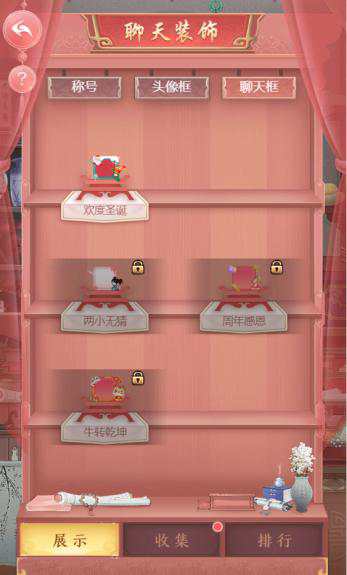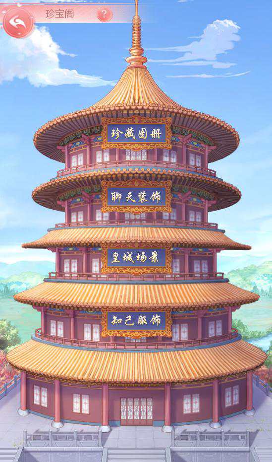 珍宝阁内一共分为四类:珍藏图册、聊天装饰、皇城场景、知己服饰。