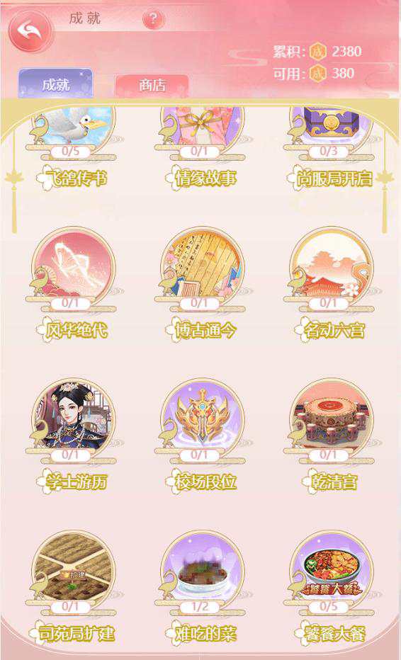 1、成就中新增成就商店,小主可以使用成就点来兑换心仪的物品~累积成就点每达到一定数量后即可解锁新的兑换权限。
