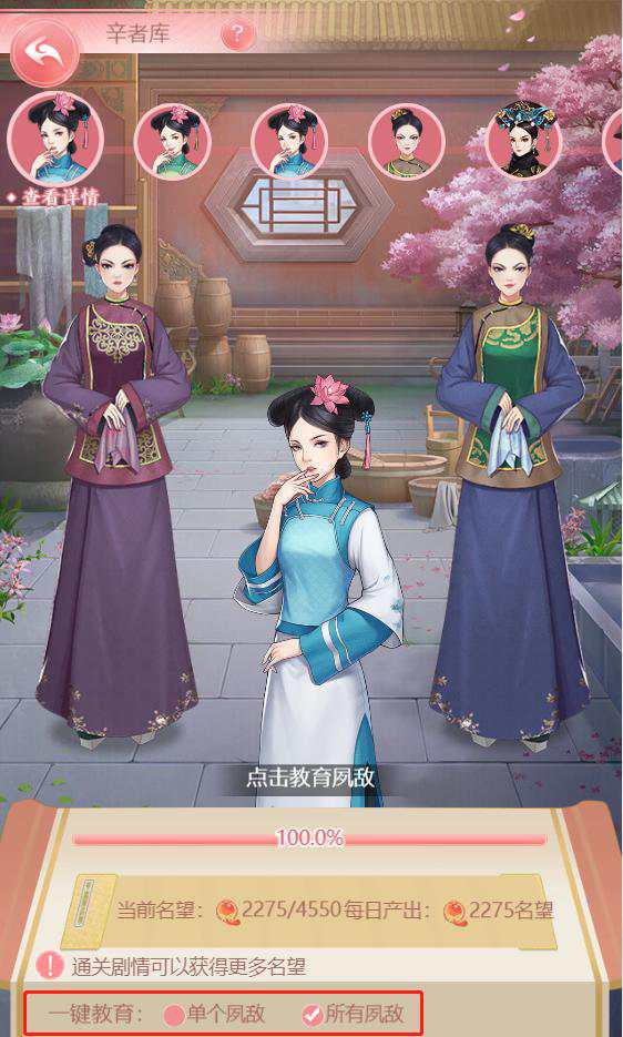 2、辛者库新增一键教育功能,增加“单个夙敌”和“所有夙敌”选项,方便小主节省时间可以处理更多宫中事务~小舞知道这个功能大家想要很久了!