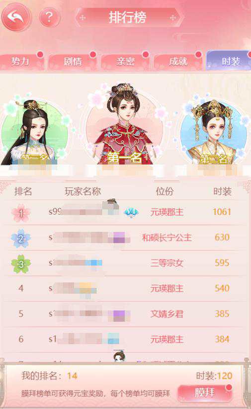 4、本服榜单新增“时装排行榜”,小主又多了一个可以展示的地方了~